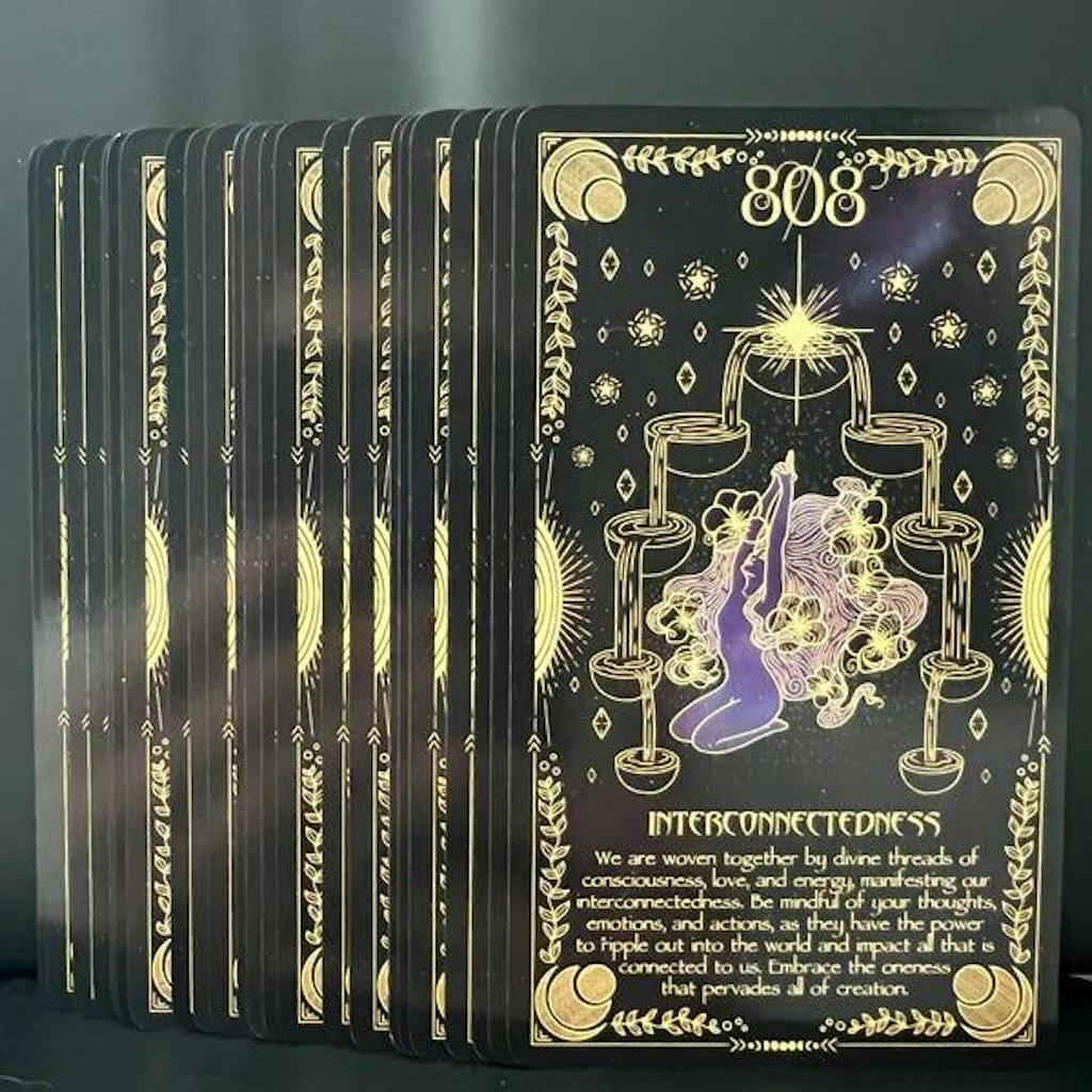 ✬ The complete 55 cards + 4 instruction cards with a captivating gold holographic gilded edge.