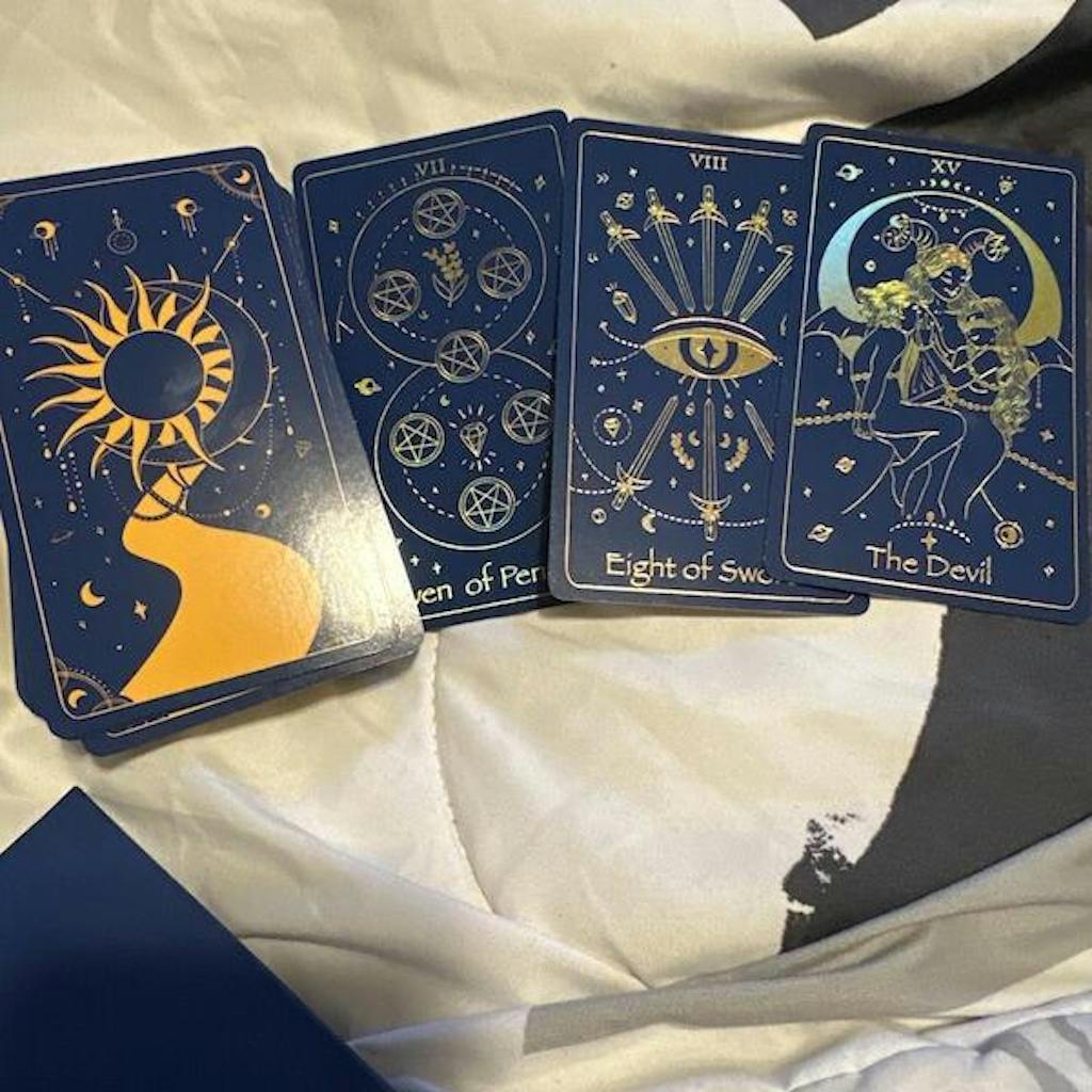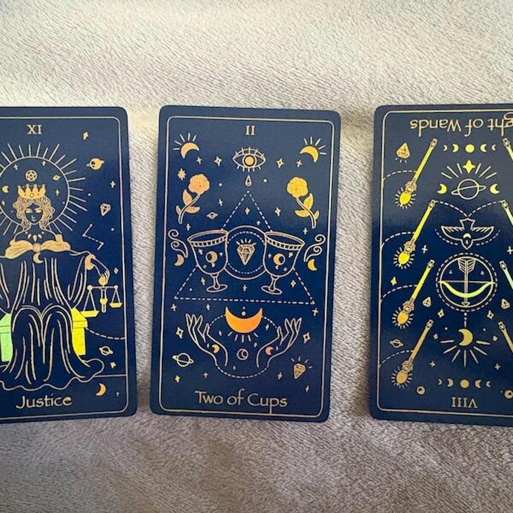 This tarot deck is beautiful! I looked until I found a deck that I was strongly drawn to. As soon as I saw this one, I knew it was the one for me. The dark blue and gold compliment each other in a bold yet calming way. It comes with a helpful guidebook, and everything fits into a sturdy box for safe keeping.